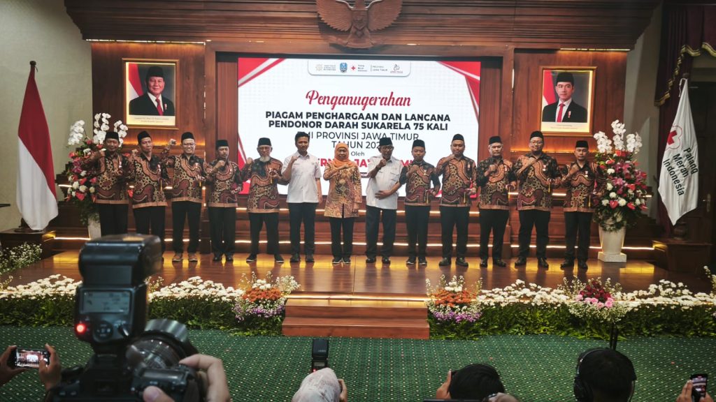Gresik, 14 Oktober 2025 – 604 pendonor darah sukarela dari berbagai kabupaten/kota di Jawa Timur menerima Piagam Penghargaan dan Lencana Donor Darah Sukarela 75 Kali di Gedung Negara Grahadi Surabaya sebagai bentuk apresiasi atas dedikasi mereka dalam menolong sesama.